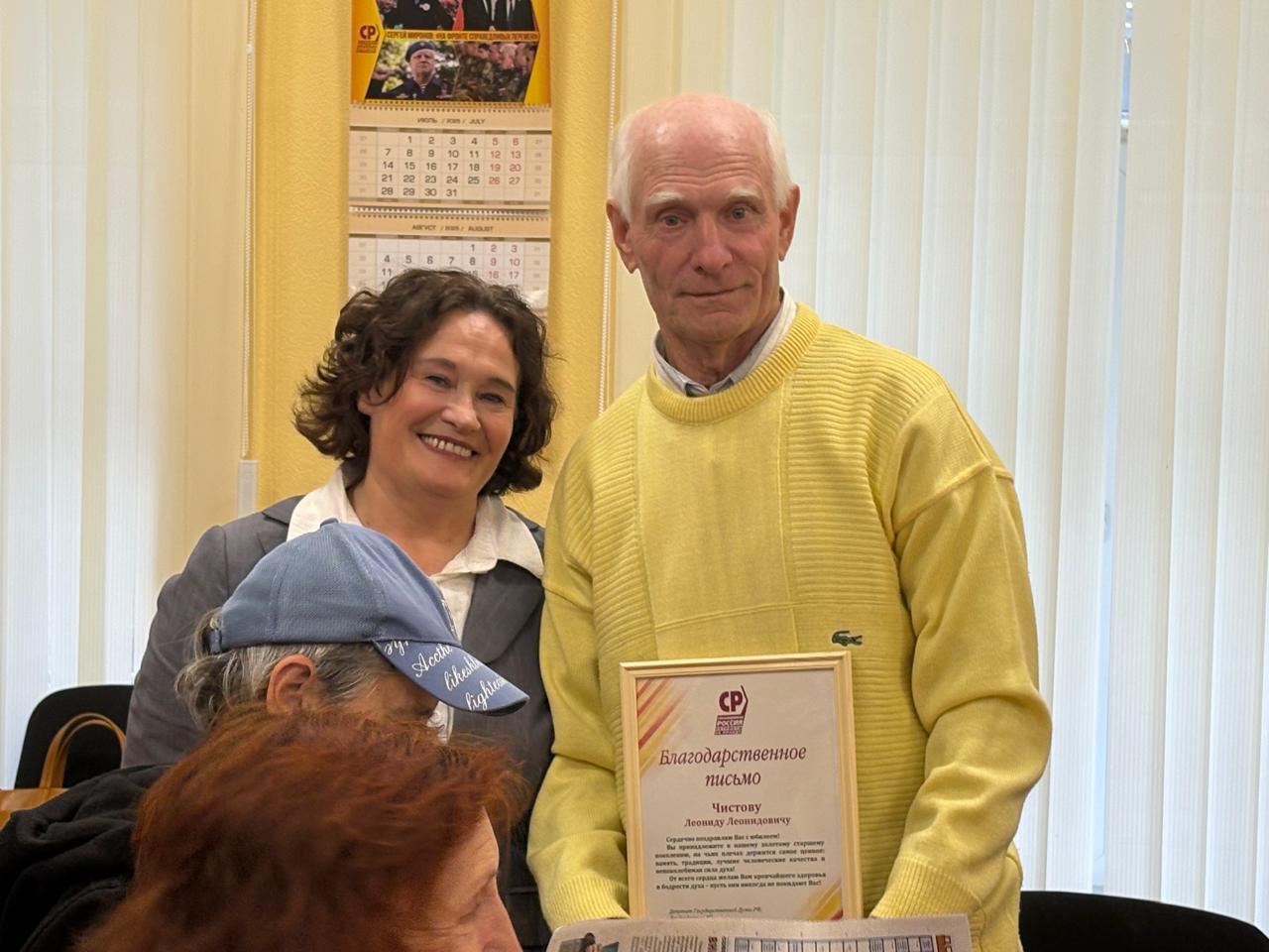 Среди тех, кто получил Благодарственное письмо с юбилеем от имени депутата Госдумы, руководителя Регионального отделения Андрея Кузнецова – Леонид Чистов и Надежда Сычева.