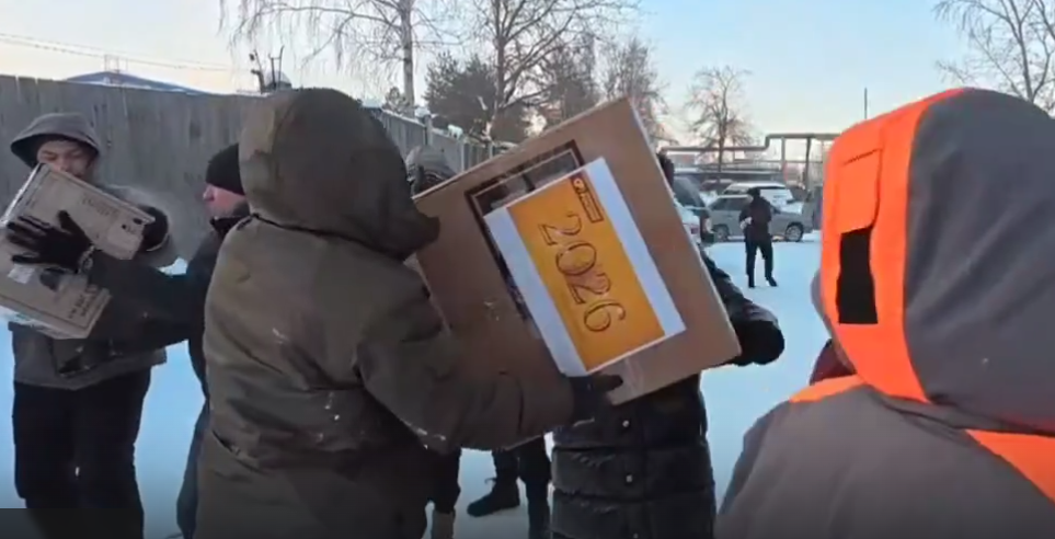 "Вот так депутаты не должны сидеть в кресле, а быть здесь, на погрузке, даже в двадцатипятиградусный мороз", – заметил организатор акции, директор Телеканала Крик-ТВ Евгений Губко.