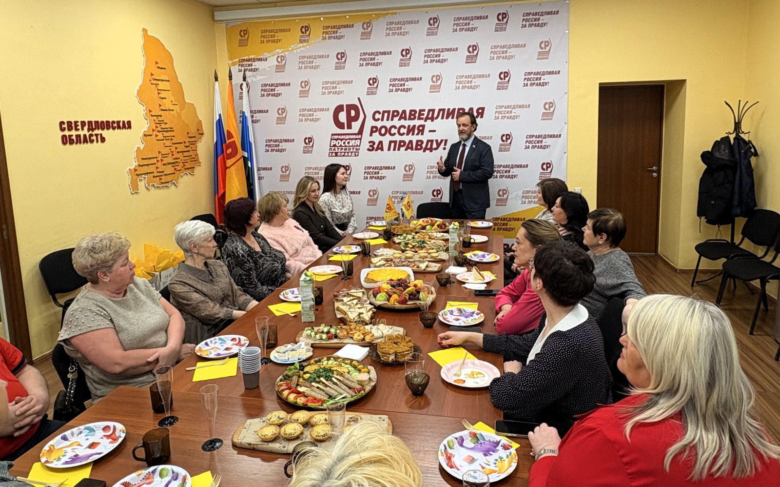 Все, кто собрался в свердловском Региональном отделении СПРАВЕДЛИВОЙ РОССИИ за праздничным столом – настоящие борцы. Внешне женственные, мягкие и хрупкие, однако внутри каждой – стальной стержень, который позволяет им ежедневно бороться за правду, помогать нуждающимся, восстанавливать справедливость.