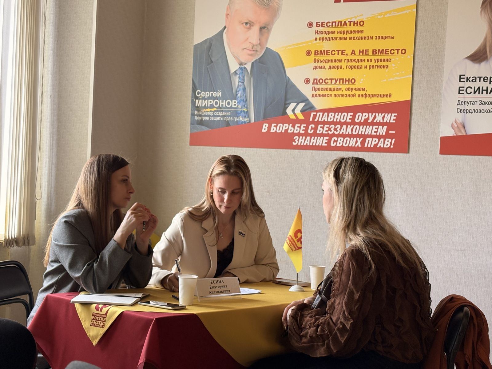 Здесь, в новом центре СПРАВЕДЛИВОЙ РОССИИ, будут проводиться не только приемы граждан, но и другие просветительские мероприятия – встречи, лекции, семинары. А пока на первом приеме, который провели депутат Госдумы Андрей Кузнецов, депутат областного Заксобрания Екатерина Есина и депутат местной думы Анастасия Трясцына, было принято в работу около десятка вопросов.