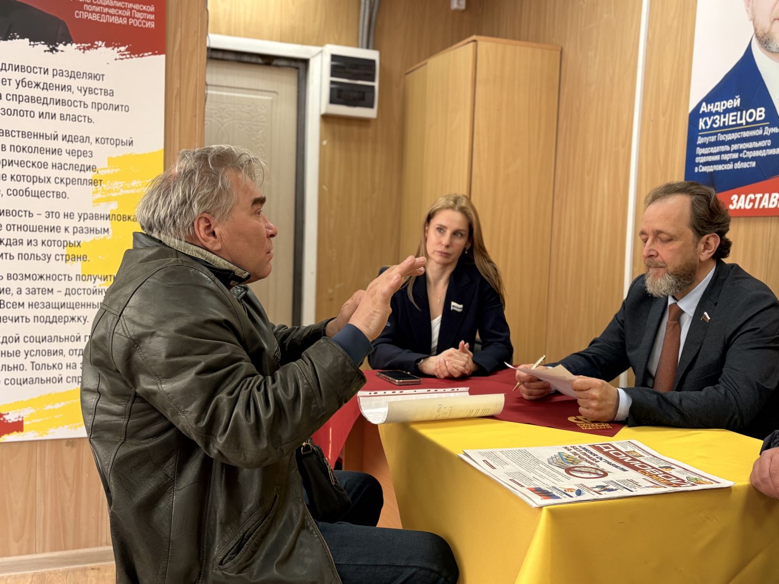 Центр защиты прав граждан в Дегтярске стал 17 по счету в Свердловской области. Традиционно рассказать местным жителям, что это за точка справедливости, приехали депутат Государственной Думы, лидер свердловских справедливороссов Андрей Кузнецов и депутат Законодательного Собрания области Екатерина Есина.